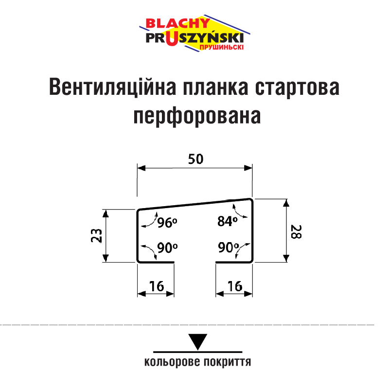Вентиляційна стартова планка підтримує належну циркуляцію повітря під покрівельним покриттям та монтується на карниз. Перфорована «лицьова» частина вентиляційної планки має невеликі отвори, які забезпечують оптимальну вентиляцію покрівлі, а також запобігають проникненню птахів і дрібних гризунів під покриття даху. Рекомендується як для модульної, так і для класичної металечерепиці.